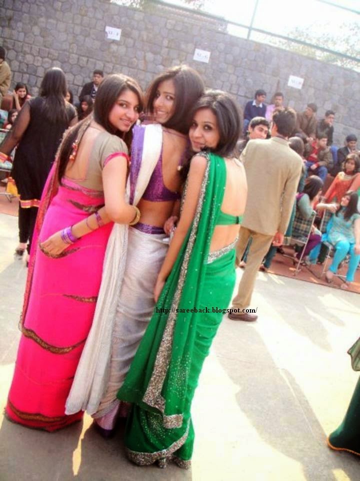college girls saree back